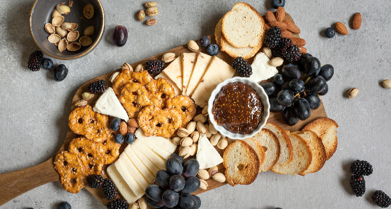 - 3-5 rodzajów sera (np. twardy kozi, krowi ser dojrzewający, owczy twarożek, gorgonzola i inne sery pleśniowe)